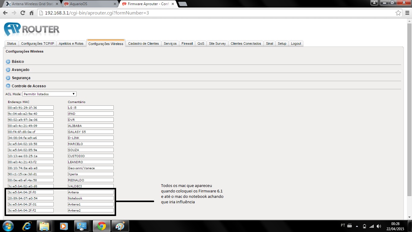 Ontem achando que essa Grid poderia estar com defeito peguei ela e fiz uma conexão com um roteador D-link que possuo e a conexão foi estabelecida só não consigo entender porque não estou conseguindo fazer com que essa Grid Station mesmo cadastrando o MAC dela no AP Router não consigo conectar?
