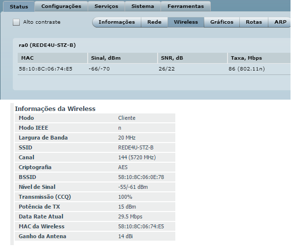 Já o sinal da torre pros cliente vai em MCS12, aí o que importa é a sensibilidade do Wom5000 e do APC-5M-18.
