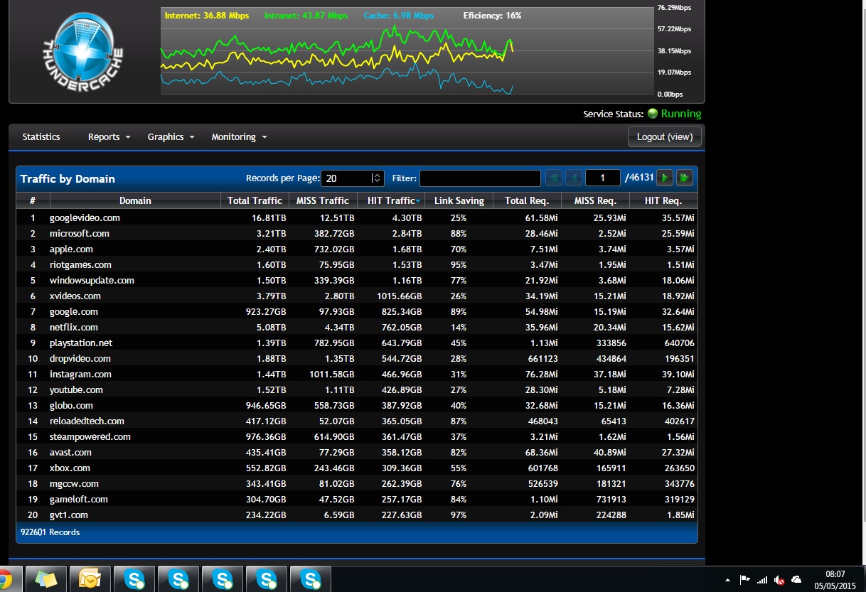 Quanto ao Netflix, show cacheando tudo normalmente, é o segundo domínio mais acessado segundo o relatório, só perde para o youtube.