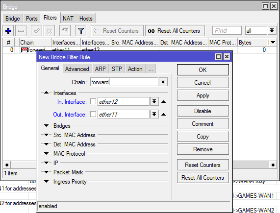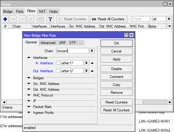 Olha as screens que vc vai entender (considere que nas minhas screens a interface ether11 é a sua ether1, a ether12 é a sua ether2, e a ether10 é a sua ether5).