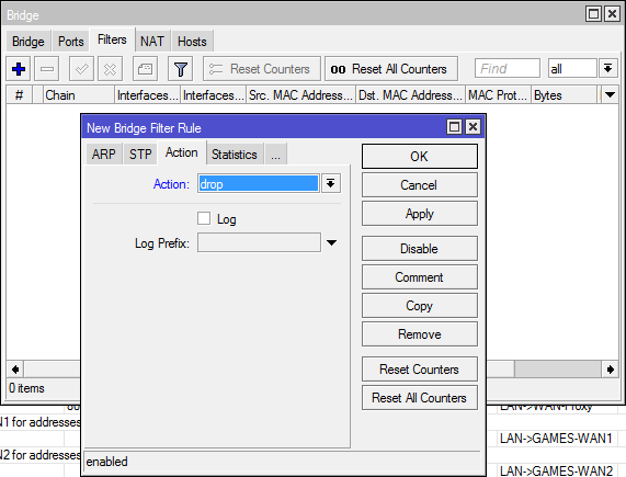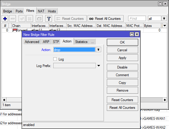 Interessante utilizando esse drop ele vai bloquear todo o tráfego entre as ether
