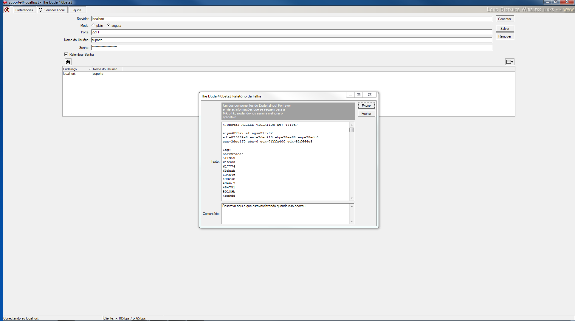 Utilizo The dude 4.0beta3 para monitorar a rede do provedor onde trabalho. Porém nesta semana o Dude parou de funcionar e exibiu este erro: