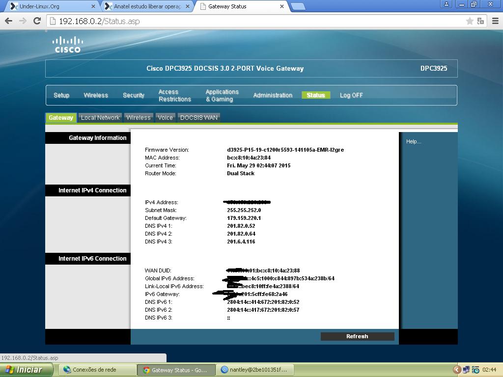 Pessoal eu entrei no meu modem da Net Virtua e já estou recebendo o IPV6, segue o print, e o modem trabalhando em dual stack.