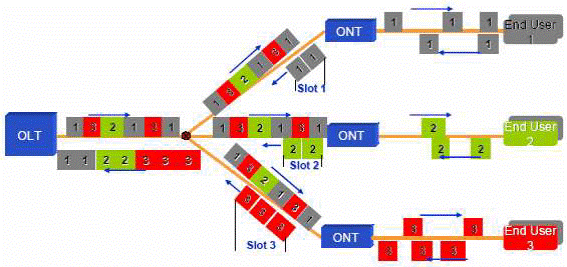 O que significa que a OLT vai dividir o tempo de troca de informações entre as ONUs.