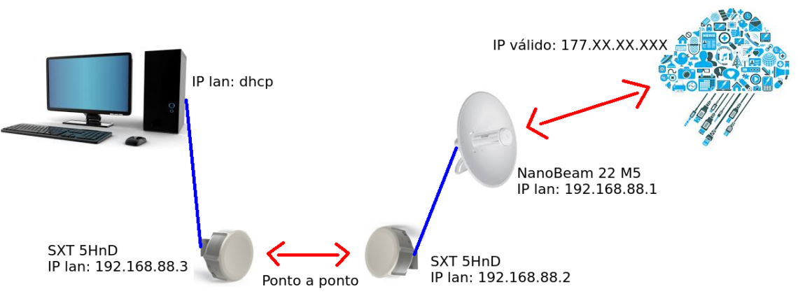 NanoBeam - IP da Wan válido e fixo: 177.XX.XX.XXX- IP da Lan: 192.168.88.1
