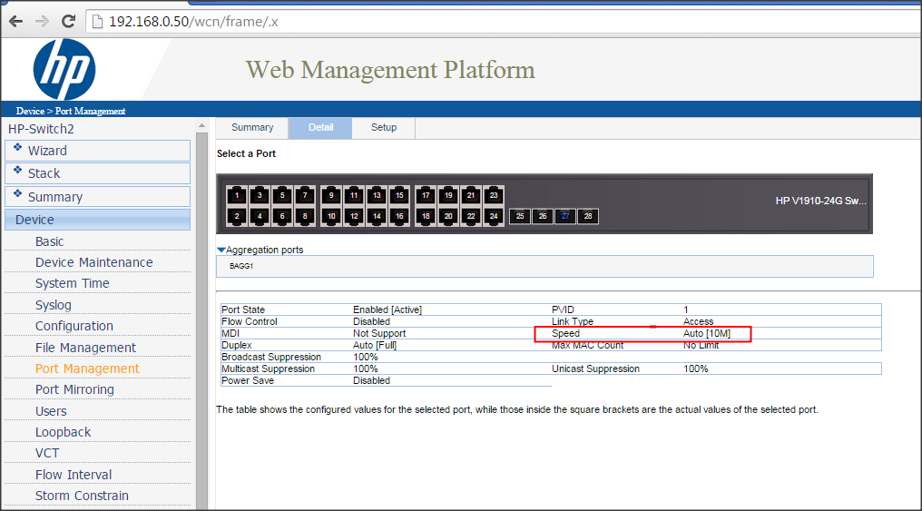 O que tenho que fazer no switch da HP 1910 será que tem algum lugar que tem que alterar as portas 25 até 28 para trabalhar em 1000(Gb)?
