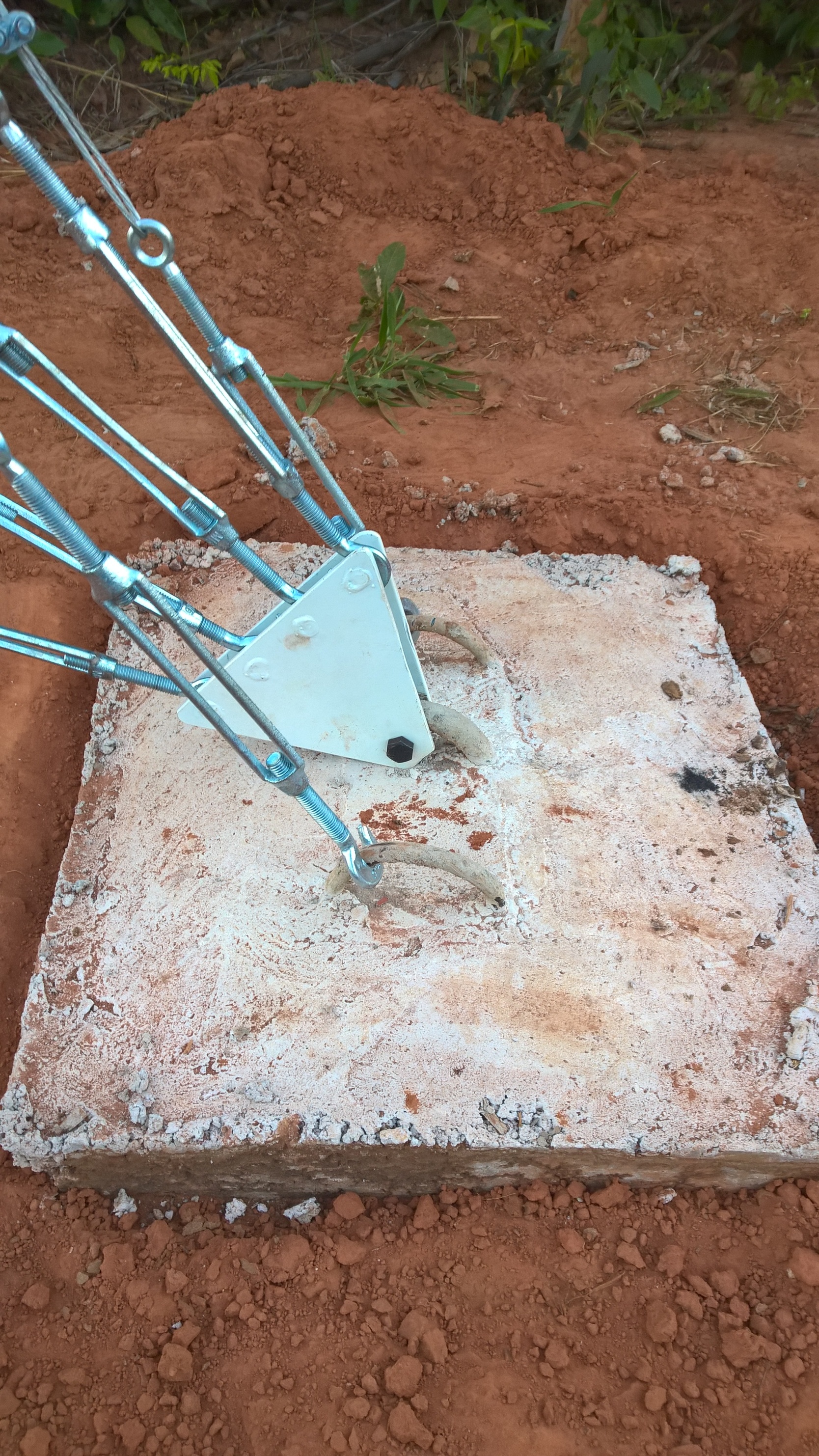 Alem disso, existem diferentes espaçamentos - eu particularmente sou coloco as sapatas na distância de 50% da altura da torre, com um cabo de aço a cada 12 metros, com 1 ou 2 estabilizadores dependendo da carga.