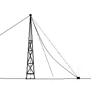 O cabo de aço multifios fica com barriga pra baixo, ele puxa pra baixo como se o estaio tivesse a uns 1/8 da altura da torre.