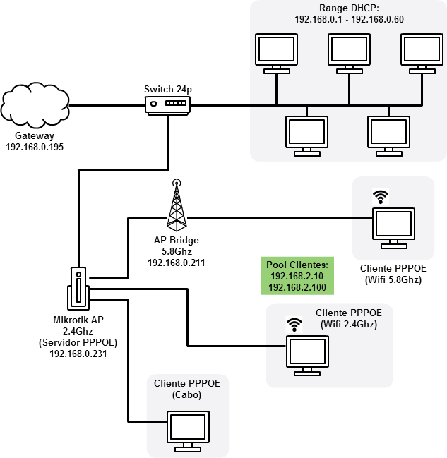 Vamos chamar de zona A a rede que está ligada no switch 24p, e zone B a parte de baixo onde os clientes conectam por PPPoE.