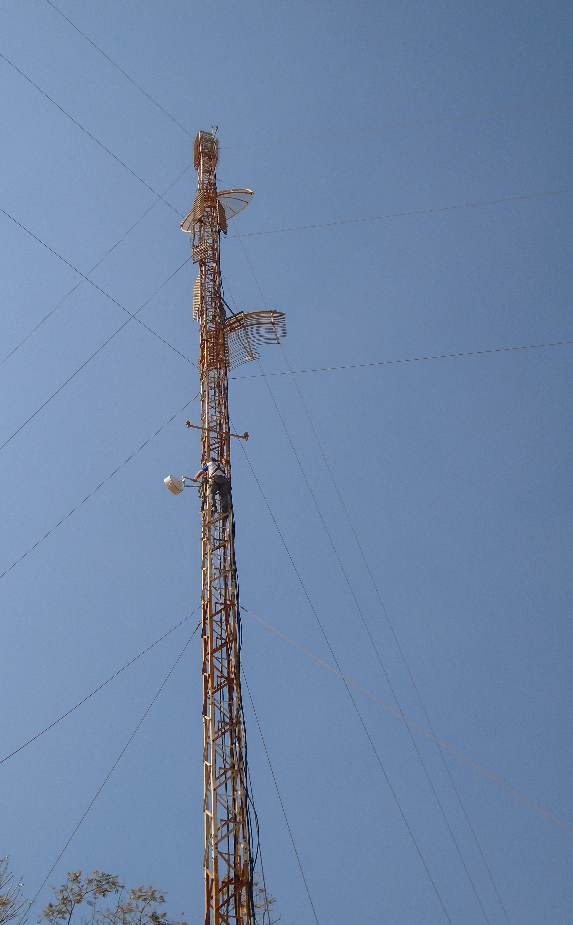 Eu não tinha trava quedas e muito menos experiência com torres, simplesmente o meu antigo chefe disse: