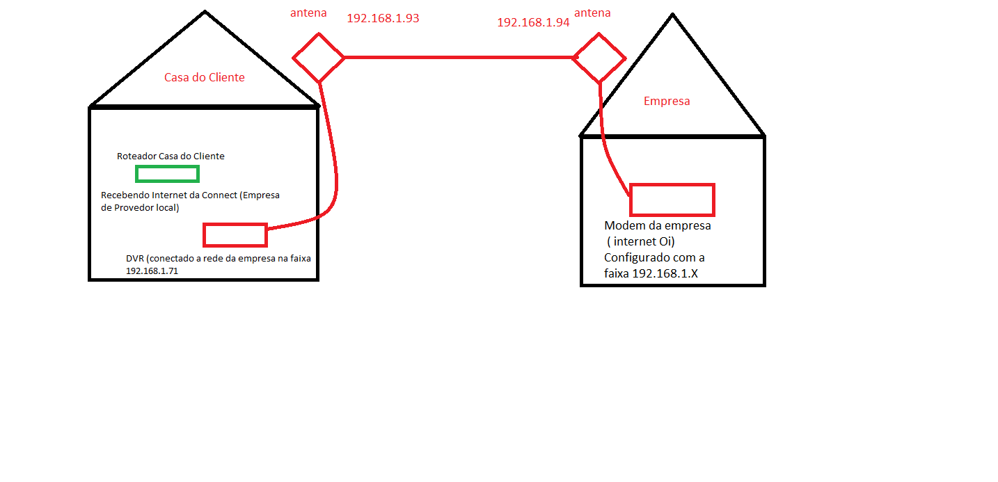 Ele quer acessar as câmeras no serviço dele, o DVR está na casa dele, conectado com a minha empresa através da rede interna da empresa.