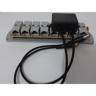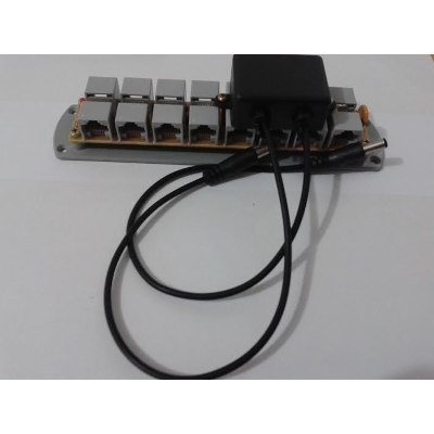 | Mini Patch Panel POE reverso 8 portas independentes, open frame ,  rececebem alimentação POE de até 48 VDC (VINDO DE ATÉ 8 CLIENTES); 8 Portas LAN convencional para conectar em um switch externo (não fornecido). Conta com conversor DC/DC chaveado , com 2 rabichos e conectores P4 de +12 VDC (para alimentação de 1 switch de 8 portas e uma ONU). Perfeito para sistemas mistos (Fibra + LAN) de baixo custo e alta confiabilidade. Muito pequeno e leve, ideal para uso em caixas herméticas. Monte seu próprio sistema, com ótimo custo/benefício ( Economia de até 50% do valor das soluções comerciais prontas e disponíveis atualmente no mercado ). Temos também um modêlo com 7 POE reverso + 1 UPLINK e 1 rabicho de alimentação (somente para o switch).
