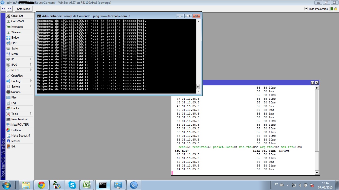 - Quando pingo o www.facebook.com a partir do mikrotik, o face responde normalmente.