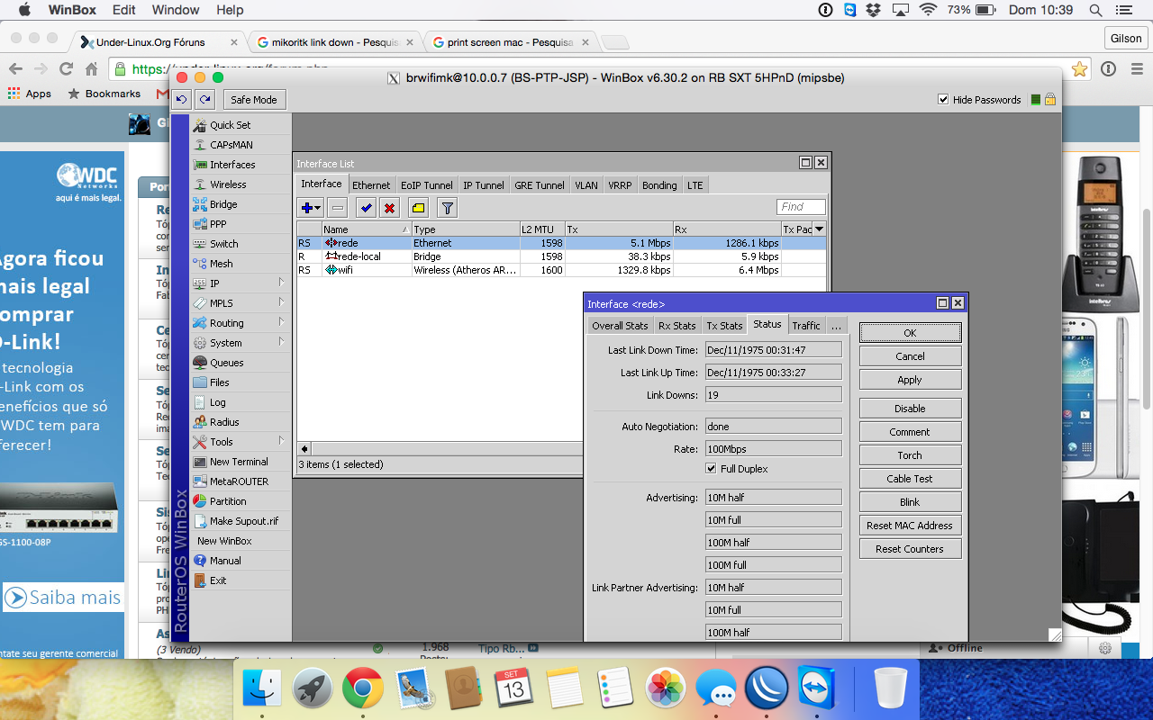 Mikrotik problemas com Inteface Down / Link Down