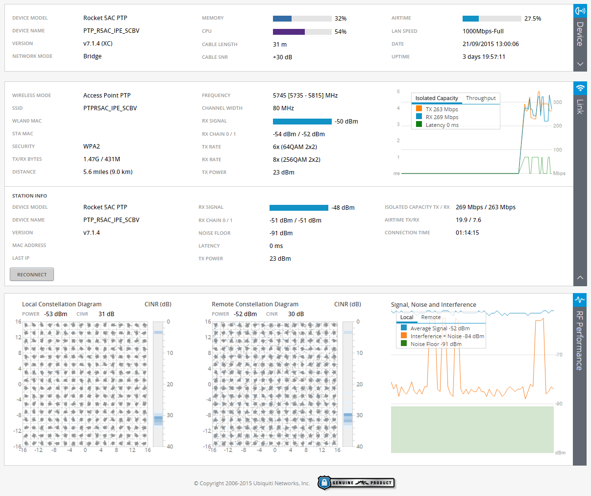 Em um cliente meu foi colocado um par de RocketAC para fazer um ponto a ponto com as seguintes caracteristicas: