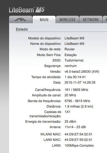 Lembrando que a versão XW.v5.6.3-beta2.28245.150902.1942.bin libera para conexão com APs sem AirMax e fica uma belezura. Essa CPE vale o que promete prática, leve e barata. Só não entendi como colocar na posição horizontal, mas como meus APs ficam na vertical tudo OK. Agora dá pra fazer enlace com um par de LiteBean, o firmware melhorou bastante.