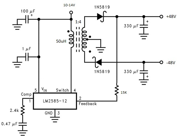 (Não precisa ter consumo na linha de +48V, ele pode ser só referência pro feedback)