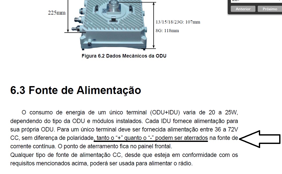 Mas acho que a maioria dos radios ainda tem ou o positivo ou o negativo ligado direto na carcaça, pra unir aterramento de fonte com o aterramento do IDU/ODU.