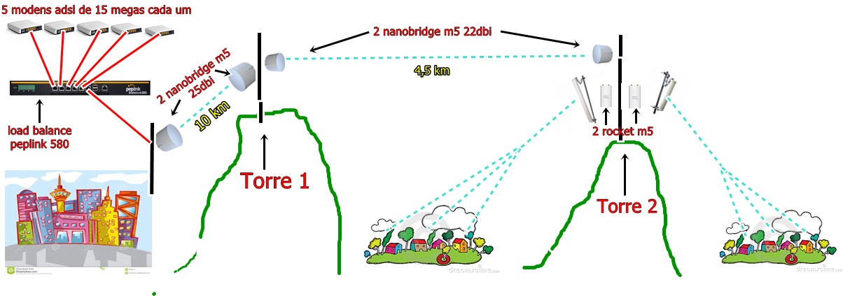 Abaixo esta esquematizado a rede que eu quero montar, porém, sugiram muitas dúvidas em relação a configuração das antenas.
