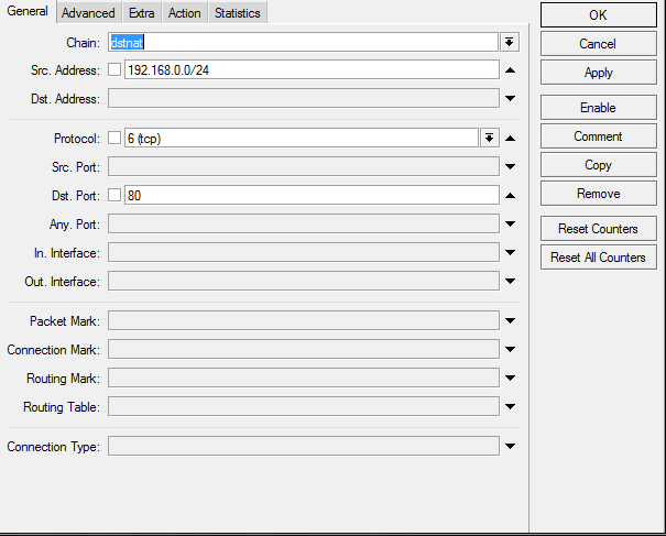 aqui esta minhas regras principais, quando eu digo ao masquerade qual a out interface ele deve usar automaticamente bloqueia minha porta do voip, ja se eu deixo a opção out interface sem marcar ele funciona normal porem o squid nao reconhece a rede e só mostra o ip do microtik no relatorio.Anexo 61169 exeto quem esta com o proxy manual ou seja o proxy transparent nao esta funcionando quando desabilita a opção out interface da regra marquerade