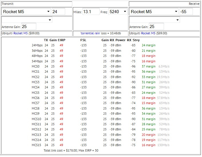 Tanto faz se preenche o calculo com Rocket, NS, NBridge, o que importa é a potência EIRP, descontado a perda por distancia (free space loss).