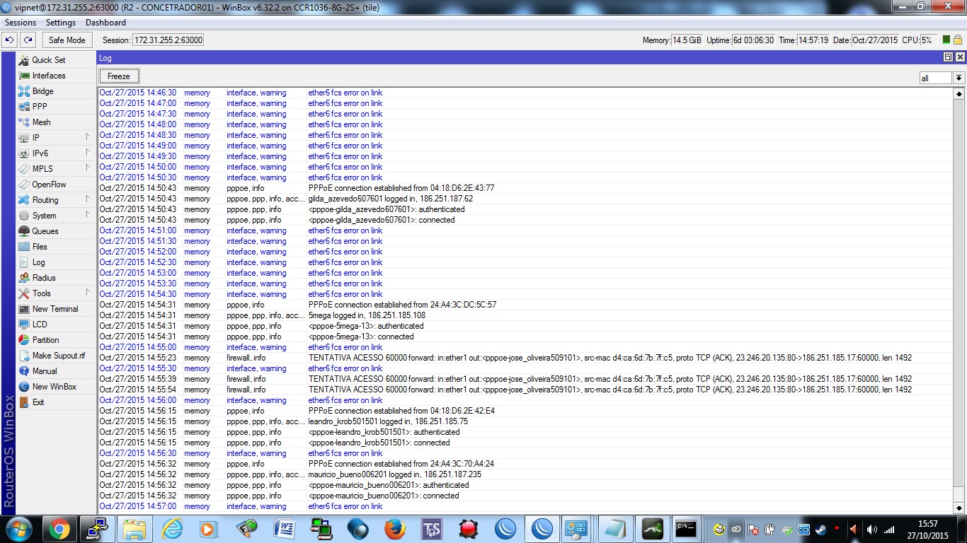 temos 4 provedores com o mesmo defeito, o erro provoca perda de pacotes na interface