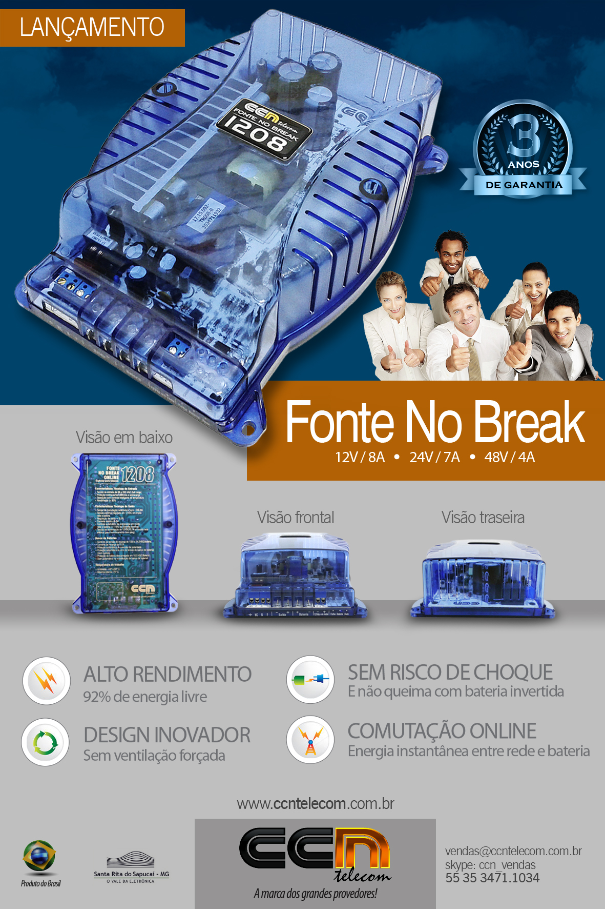 Fonte No Break CCN telecom, SEM VENTILAÇÃO FORÇADA!