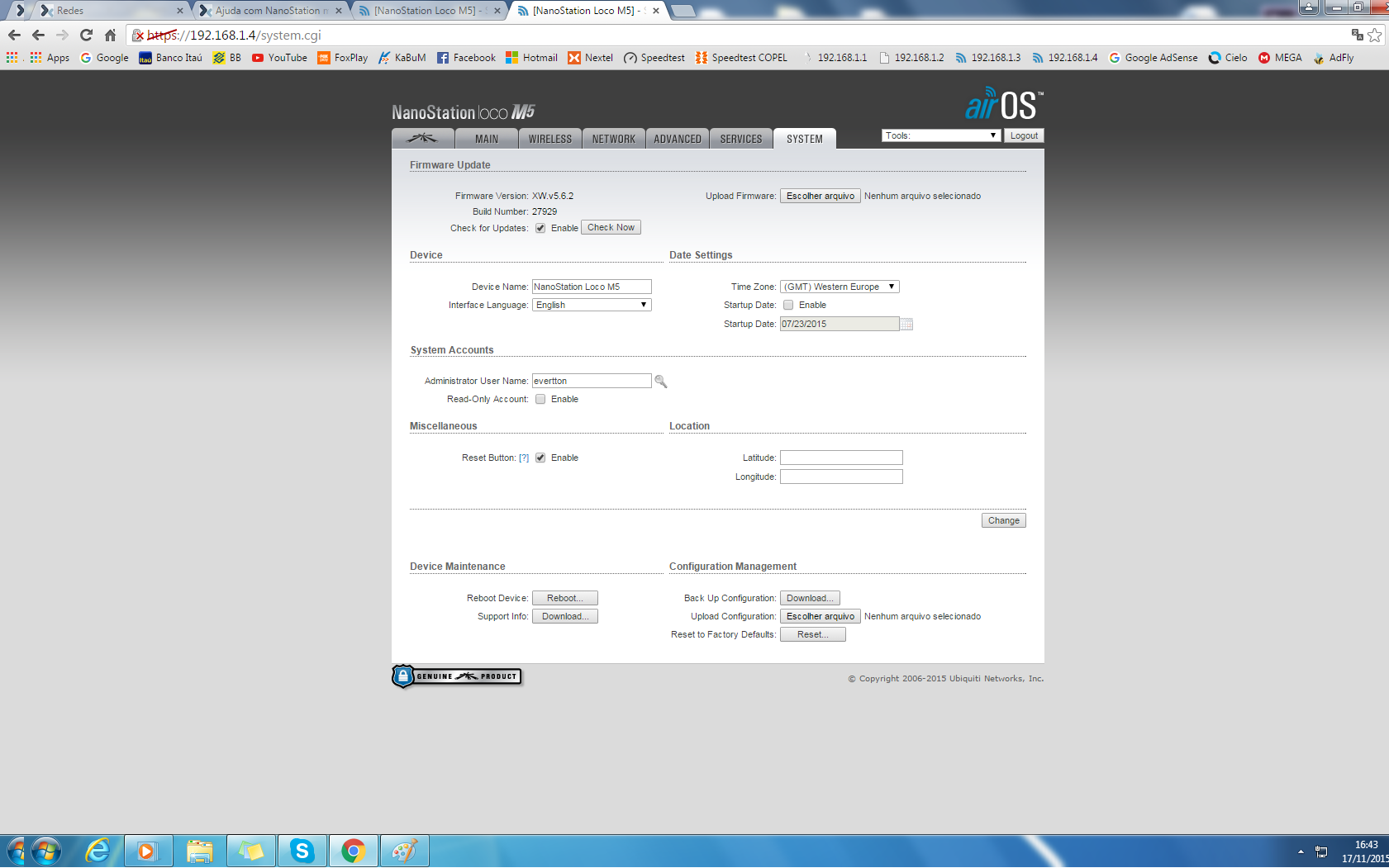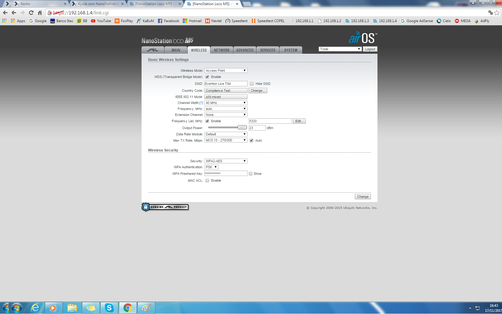 Re: Ajuda com NanoStation m5 Loco 5.8Ghz