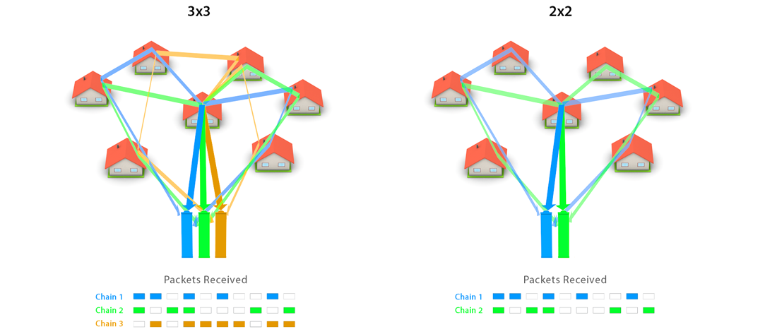Três antena cadeia proporciona uma maior diversidade de sinal. Cada fluxo é transmitido de forma independente e ajuda a lidar melhor com reflexões. Se houver obstáculos na área do setor, tais como árvores, ou edifícios, 3x3 Sector Carrier Class terá melhor desempenho na recepção de sinal do que Sector 2x2.