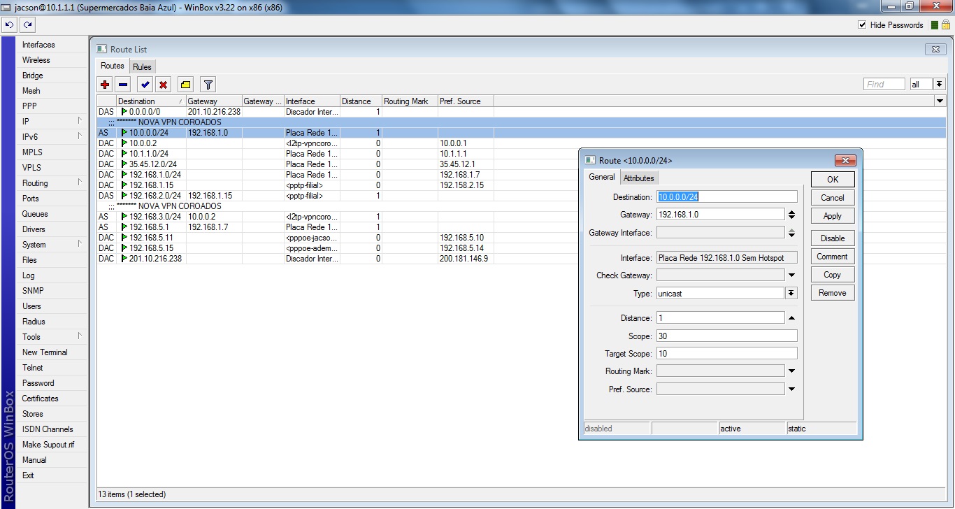 Re: Vpn e redirecionamento de portas no mikrotik