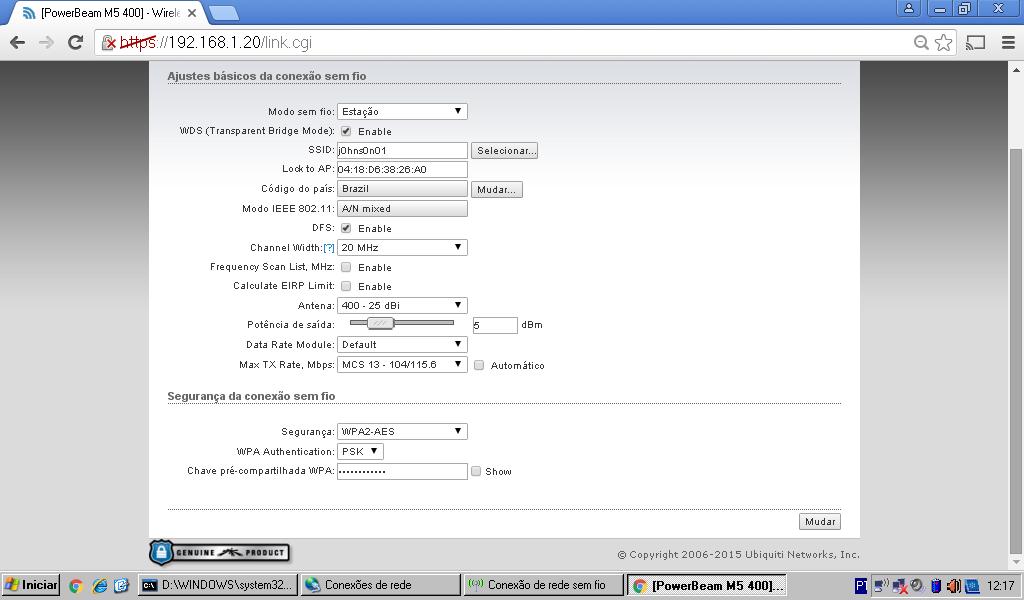 coloque as configurações do AP e da estação para que possamos te ajudar.