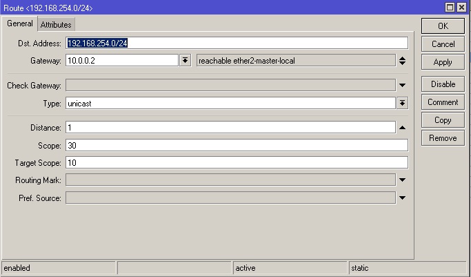 No mikrotik tem rota para a rede 192.168.254.0/24 ?