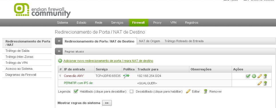 Todas as configurações são feitas no Menu FIREWALL do Endian