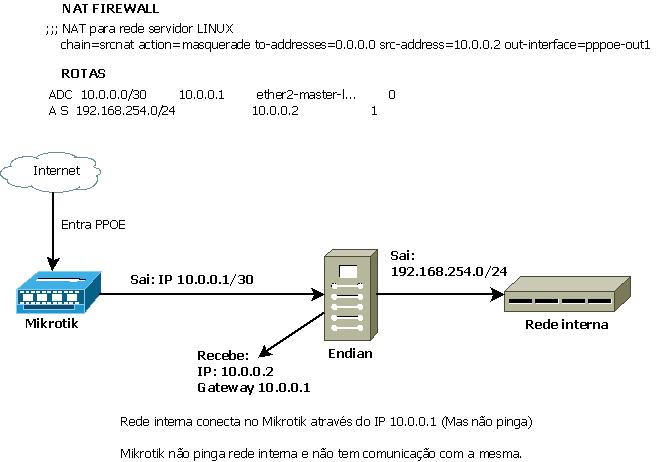 No Firewall está como masquerade. E no Endian entra o IP que sai do MK e sai por ele a faixa de IP 192.168.254.254/24.