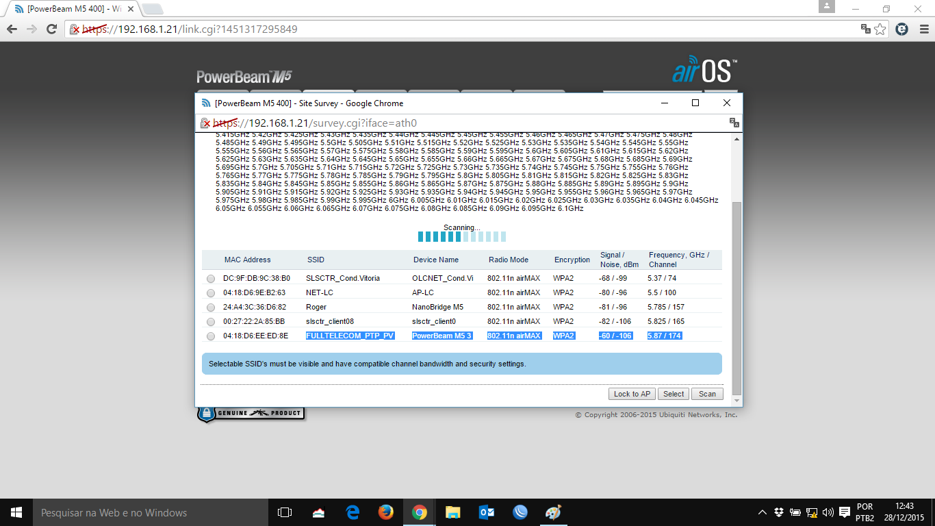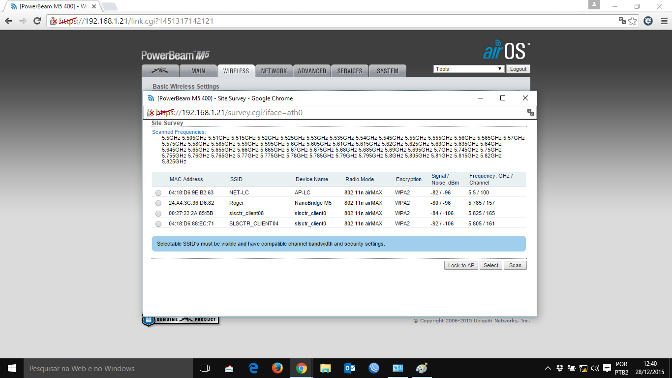 O teste esta sendo feito embaixo da torre. E so encontra um PTP em airmax meu, os aps MK que fazer PMTP não acha nem que a peste.