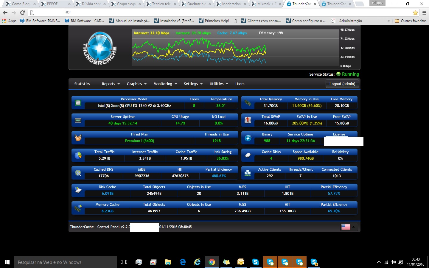 O meu Thunder estava meio murcho, daí entrei em contato com o Felipe aí da FCNetwork e ele deu uma turbinada aqui no bicho, até antes do almoço com uptime tbm de 11 dias igual ao print dele o meu estava com 21% de economia, agora depois da turbinada já está batendo 23%, com pouco mais de 40min subiu mais 2%.