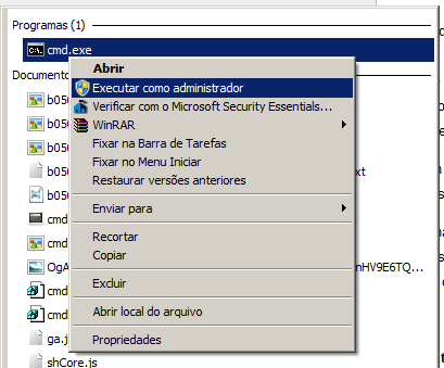 Aí você estará rodando o prompt de comando com privilégios de administrador.