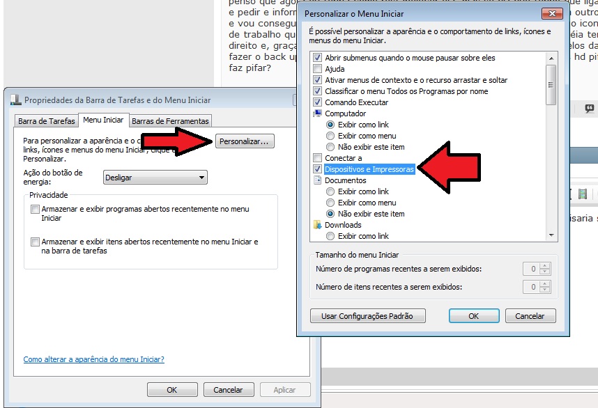 Vai abrir as propriedades dela, aí muda pra aba "Menu Iniciar", clica em Personalizar, e acha a função que quer tirar ou colocar: