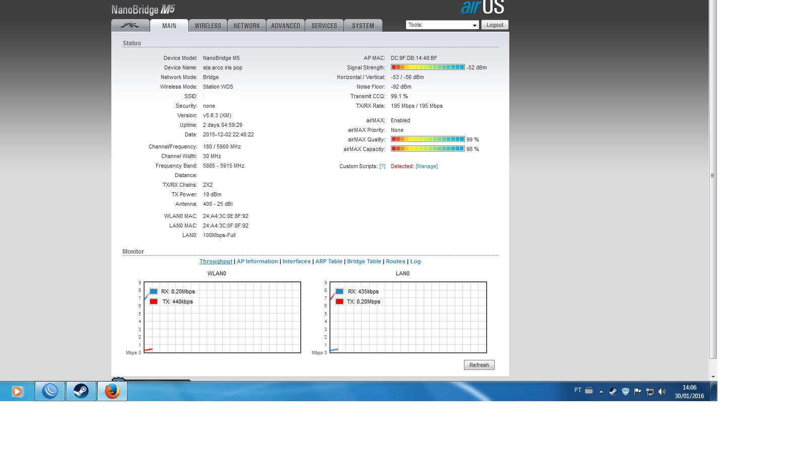 Olerlhared é o seguinte, olhei as fotos e tenho quase certeza que o problema ea largura que vc ta colocando vc ja viu quanto a qualidade aimax esta  em 35%, pra se trabalha em uma largura tenque ser no interior pq hj ta dificil vo te manda uma foto minha do ptp que tenho nas minha nonabridge tenque fica mais ou menos assim  o meu ta em 30 mhzAnexo 62532