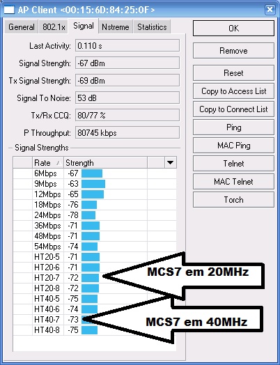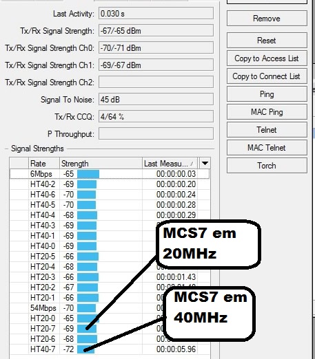 O MK é bom pra ver melhor isso, as vezes a diferença entre MCS7 em 20 e 40MHz é só 1 ou 2dBm: