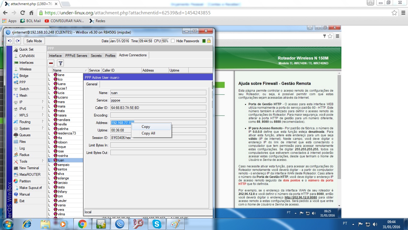 ex: minha faixa de ip aqui pppoe é 192.168.77.1 até 77.254. Digamos que o roteador pegou o ip 192.168.77.40, agora é so voce ir no roteador do cliente e fazer conforme a foto. https://under-linux.org/attachment.p...9&d=1454243855.