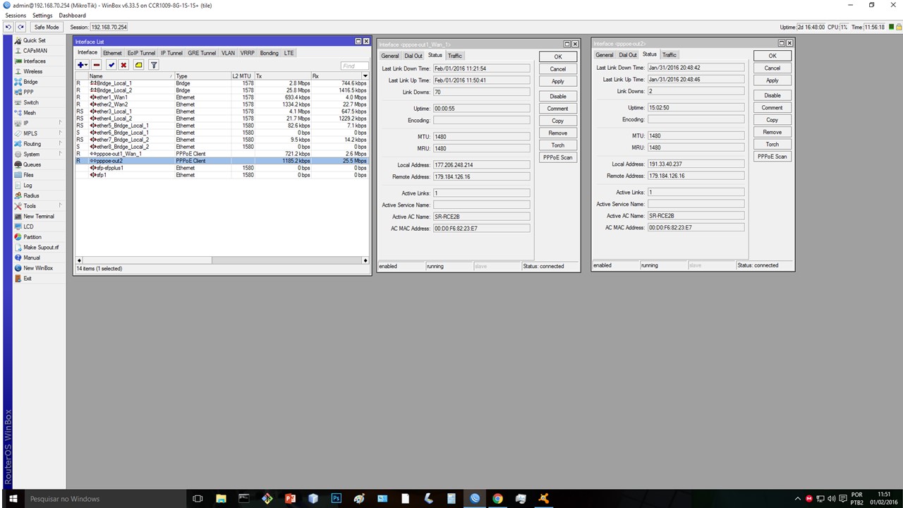 tenho um servidor MK que disca os links de 50MB da GVT (moldem em bridge) porem o link 1 esta com 70 Link Downs