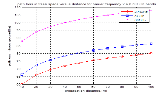 O calculo de queda de sinal por distância depende da frequencia, 2,4GHz cai MENOS o sinal que 5GHz.