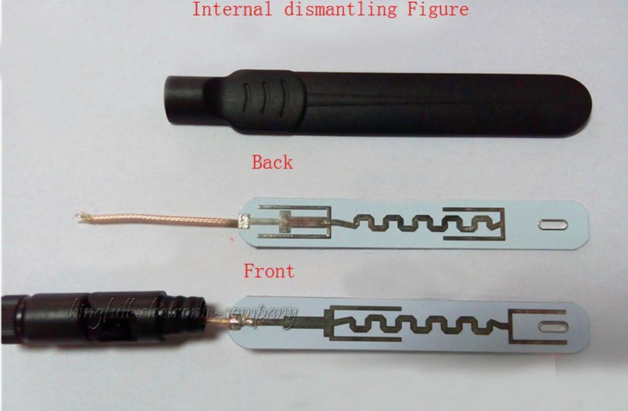 Outro tipo de antena dual-band, também 5dBi, tecnicamente também é dipolo, mas... em cima e em baixo tem elementos de polarização pra garantir mais qualidade, por isso pode ser dual-band, ter emissão ok, e ainda assim não tem VSWR alto tipo 2.0: