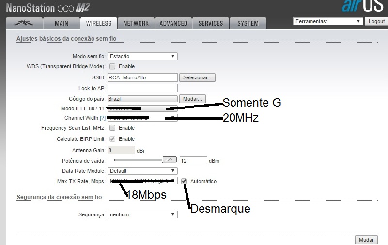 Estes dados eu descobri nos print. Não tem airmax e a polarização deve estar certa pois o sinal é forte.