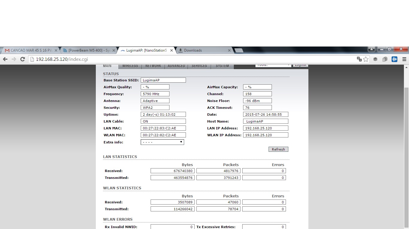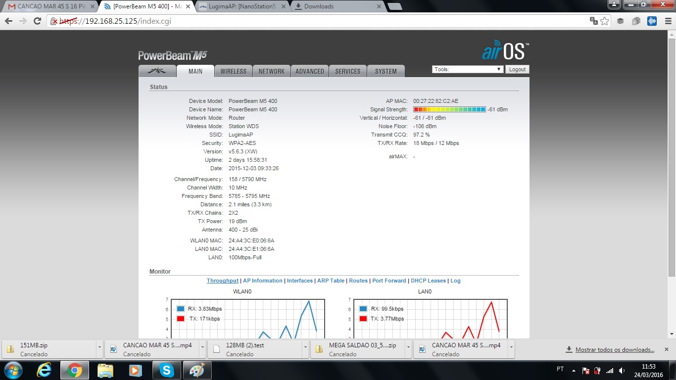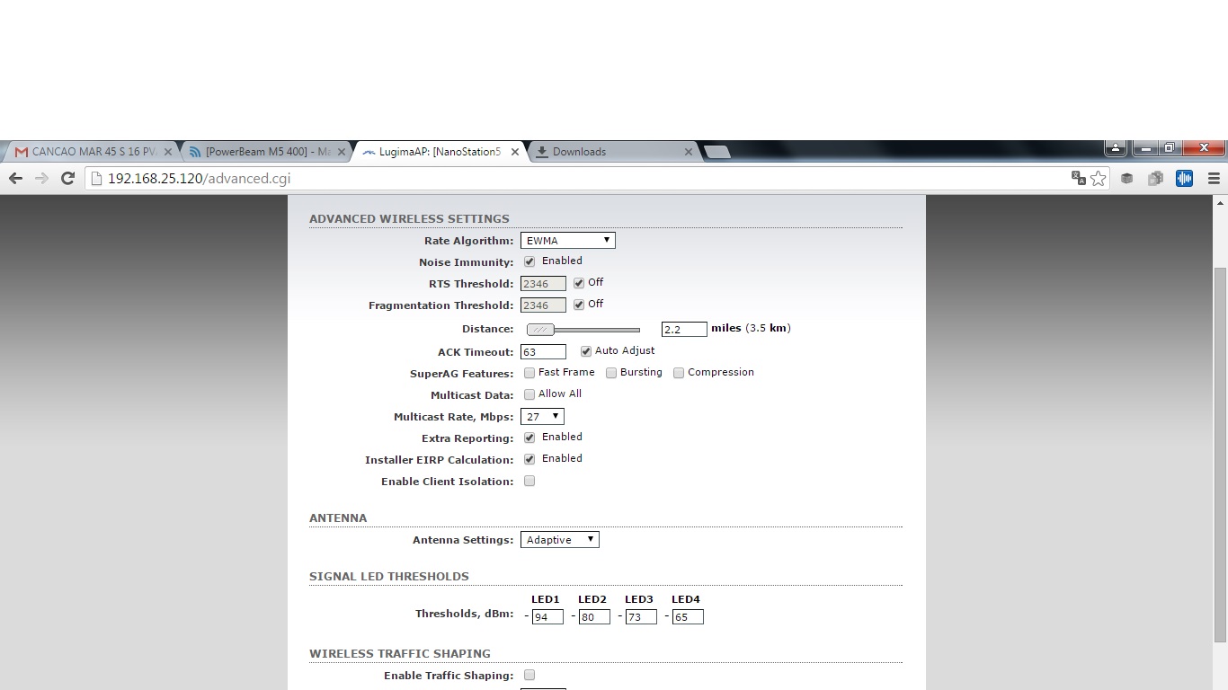 (Colocar firmware mais novo nos NS Loco5, pra suportar N, até tem quem faça, mas é hardware velho, seria como colocar ignição eletrônica num Fusca 1974, melhora o desempenho mas ainda não chega aos pés do consumo e velocidade de um veículo 40 anos mais novo, é paliativo e não solução, ele vai igual usar só 1 polarização por vez (Tem antena dupla, mas não tem 2 chains), vai te prender nuns 12-14Mbps com esse sinal baixo, e não tem como subir o sinal já que a antena é de baixo ganho, melhor colocar algo com 15dbi ou mais)