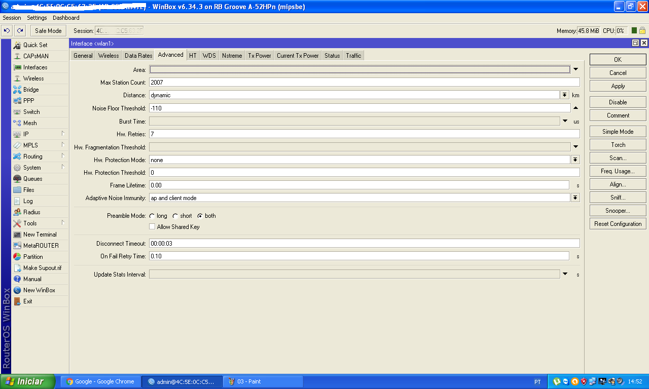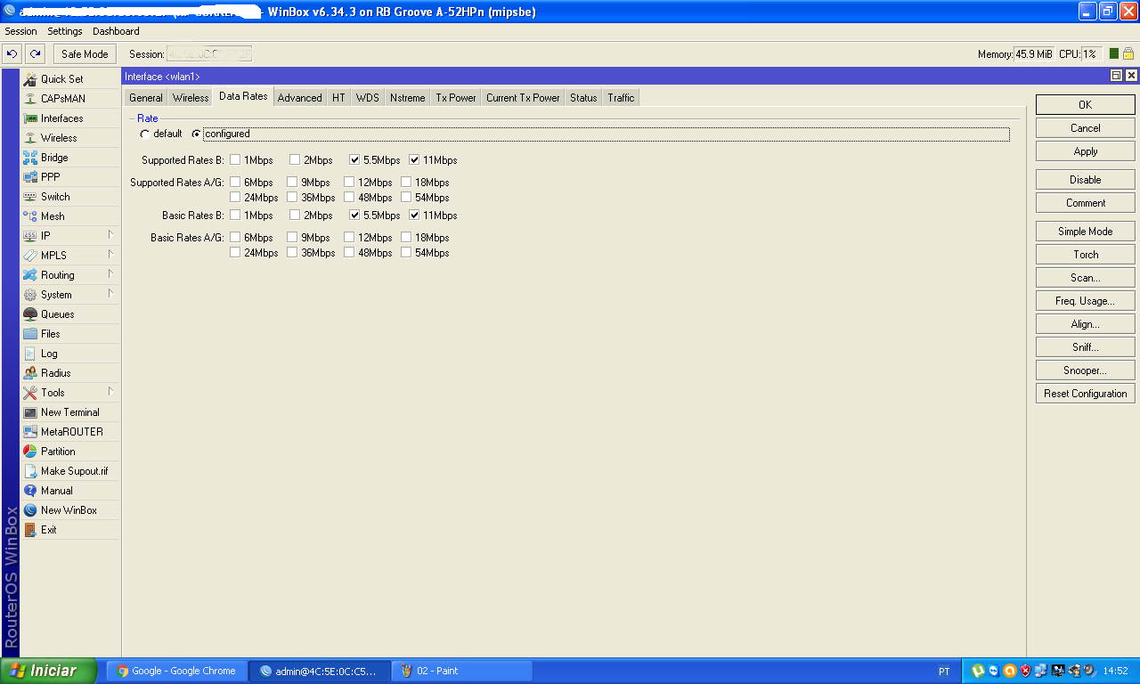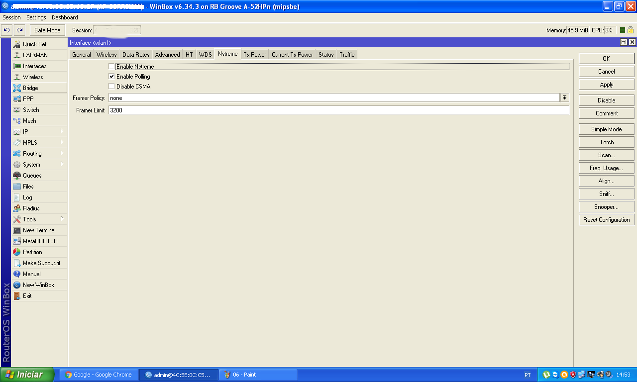 E veja o CCQ, em Wireless, aba Registration, exibe o CCQ, vai que tem cliente com conexão péssima gerando CCQ de 50%, um cliente ruim derruba a qualidade geral de TODOS quando se usa esses modos antigos.