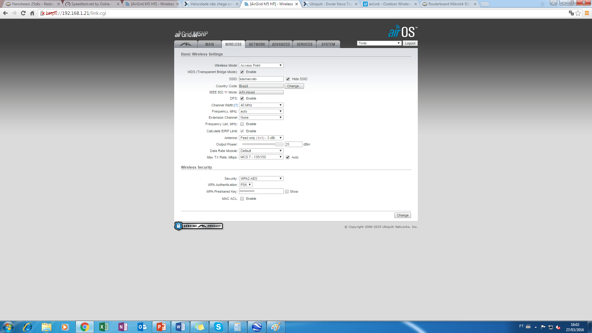 Ponto a ponto Airgrid m5hp 23dbi Velocidade não chega como esperado!