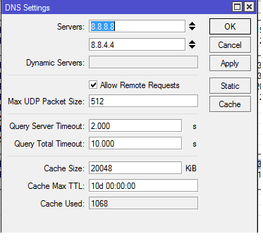 óla pessoal , tenho duas duvidas sobre Dns no mikrotik são as seguintes .