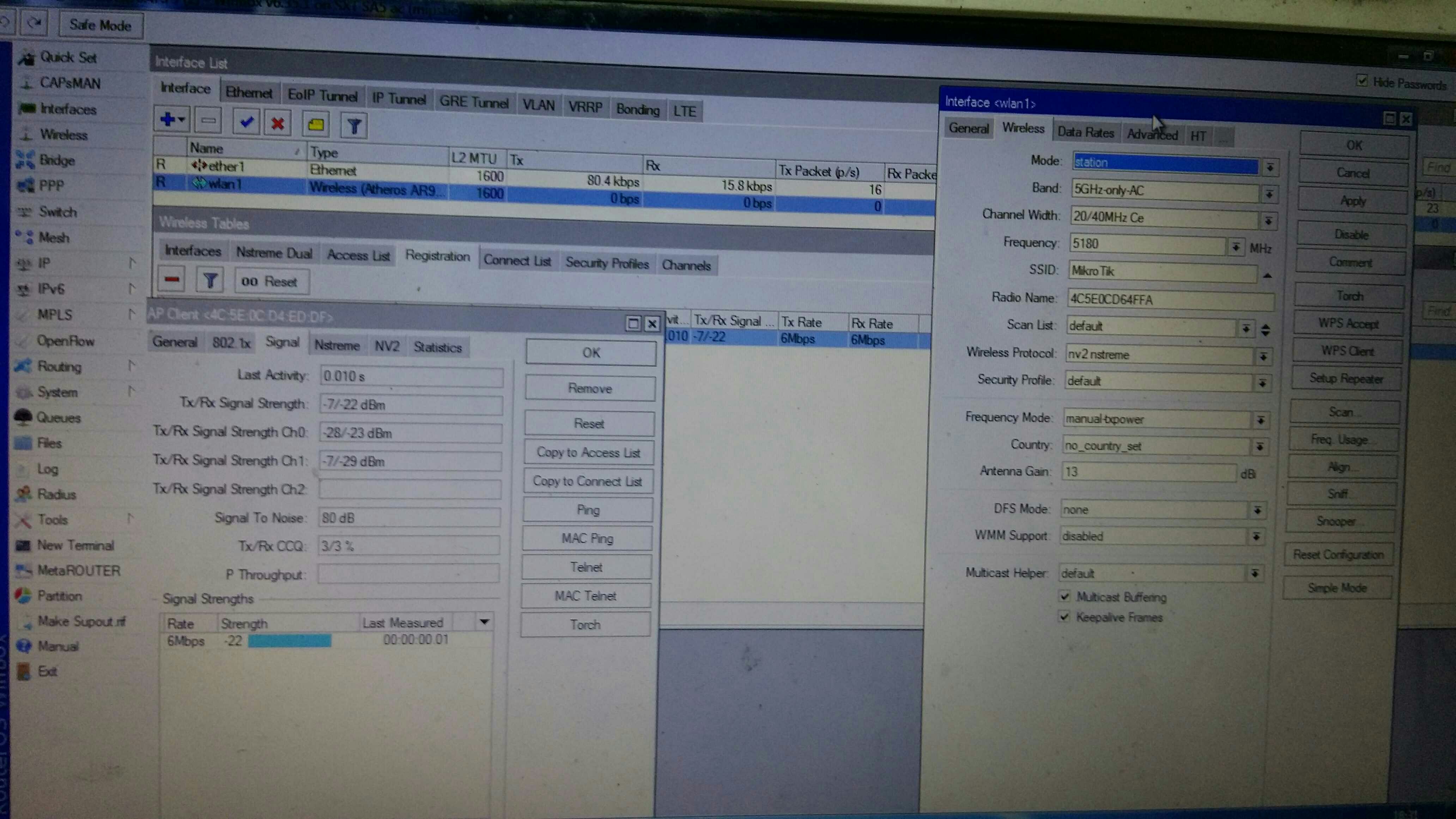 Se uma SXT Lite5 tem capacidade pra 30M full é outra estória, mas seja lá qual for o rádio eu digo que o sinal mínimo pra isso em distância curta é de uns -65dBm de sinal.